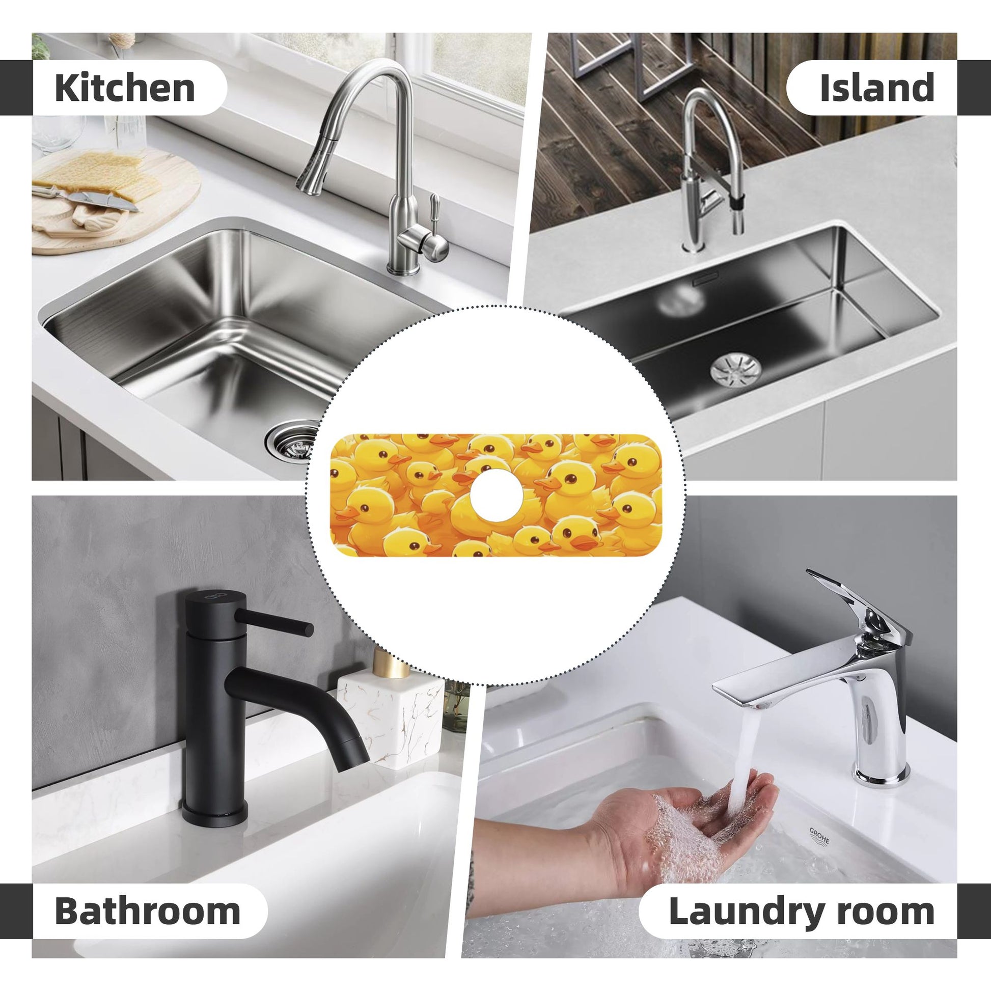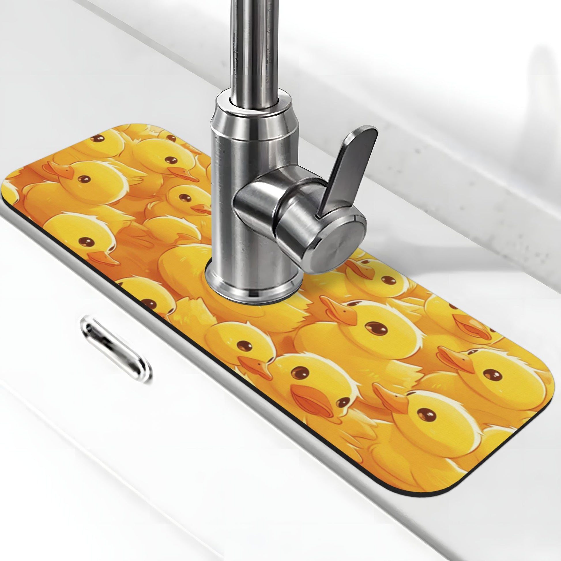 Bring fun, function, and freshness to your countertop with this irresistibly cute duckling faucet mat!
