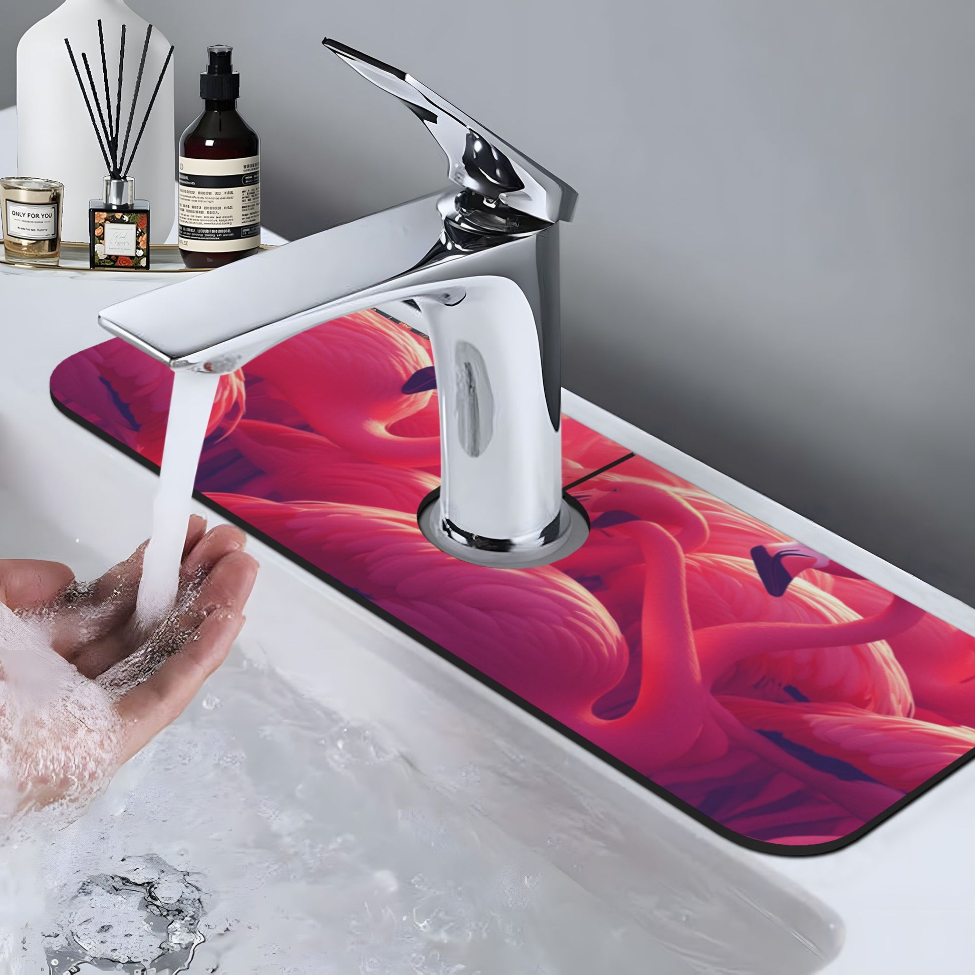 Add a burst of tropical charm to your sink area with this vibrant Flamingo Faucet Absorbent Mat. Featuring a vivid cluster of flamingos in rich pink tones, this mat doubles as a decorative accent and a highly practical splash guard. It efficiently absorbs excess moisture from faucet splashes, keeping your countertop dry, clean, and mold-free.